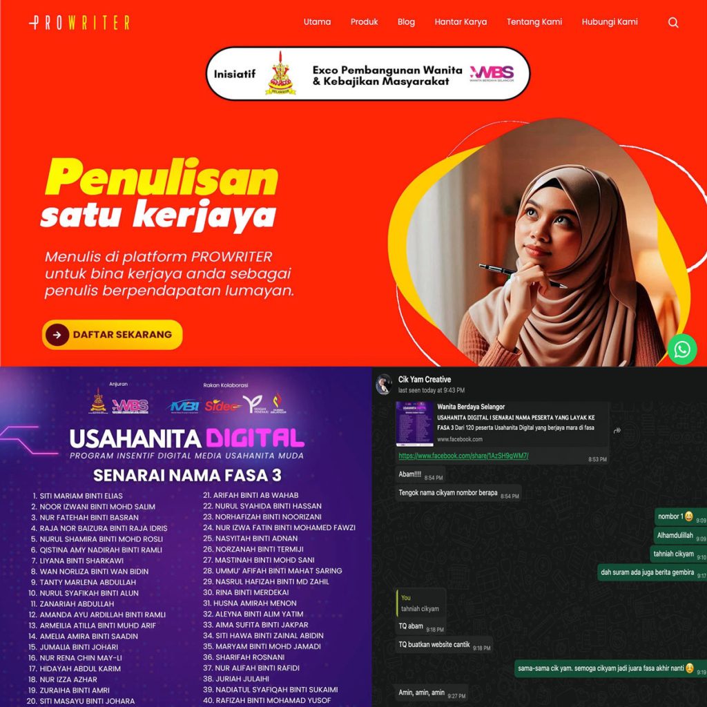 ➡️ Website simple tapi fokus tarik prospek → diiktiraf sebagai pemenang Fasa 3 Usahanita Digital Selangor 2025.